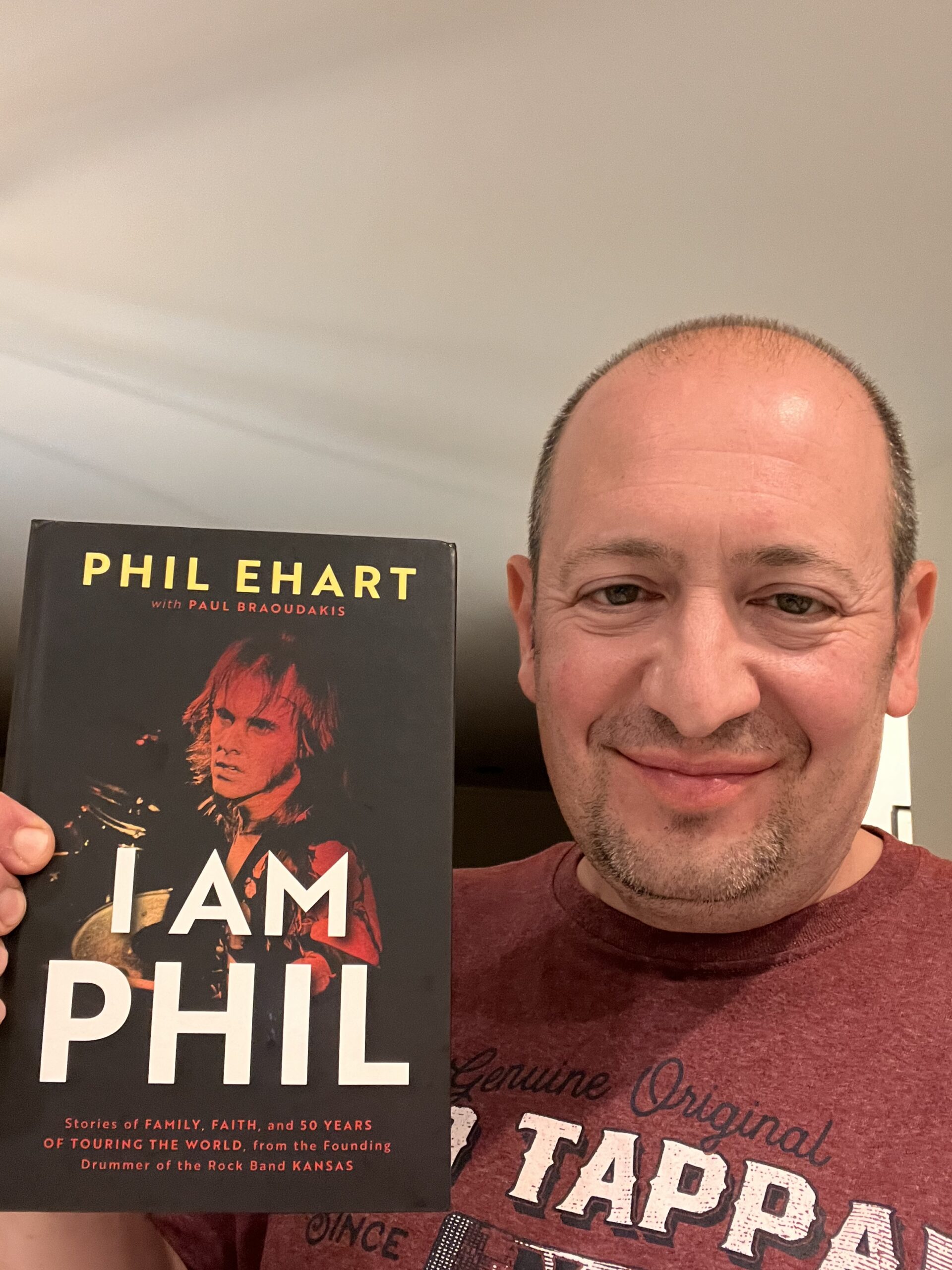 Just got my copy of “I Am Phil,” the new memoir by my boss, Phil Ehart. Phil has played drums on every song Kansas has ever recorded and has managed the band for 40 years! He has navigated numerous personnel changes and weathered all kinds of storms. If it wasn’t for this man, Kansas would not be touring today. I had the honor of sharing the stage with Phil every night from May of 2023 when I joined the band to early February of ‘24 when a near fatal heat attack forced him to step back from touring and run the band from his home. It’s still always a blast when Phil comes back and sits in with us.