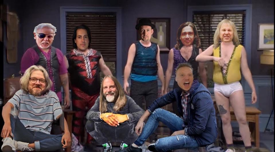 On April 4th, Jack Black hosted SNL. A segment aired titled “Husbands.” In the segment, a bunch of married girlfriends get together to socialize. Their husbands, who seemingly have nothing in common, are stuck in the basement trying to awkwardly start a conversation. All of a sudden, Jack Black’s character starts singing “Carry on Wayward Son,” ripping off his clothes to reveal a skintight jump suit. One by one, each guy knows the song and joins in, also ripping off their clothes to reveal the jump suit underneath. It’s a hilarious segment and ALWAYS great advertising for the band, introducing our music to new generations! You can watch the segment below. A fan made this hilarious photo where they inserted our faces over the SNL cast from the segment.
